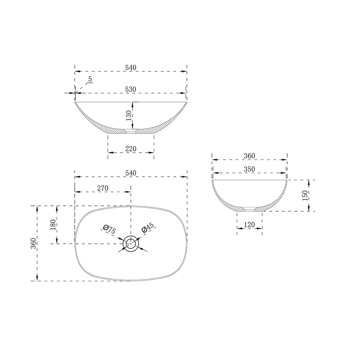 Раковина из искусственного камня Vincea VBS-6T12MW 54х36 накладная цвет белый матовый