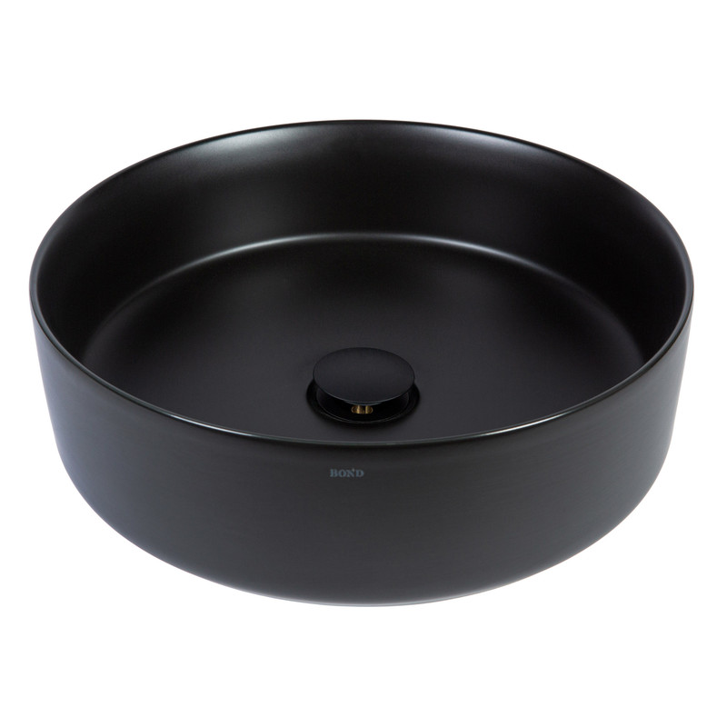 Раковина накладная круглая 39*39*15см черная матовая BOND Circle S53-398 без отверстия под смеситель имеет стильный дизайн и отлично смотрится в современном интерьере ванной комнаты. Раковина-чаша изготовлена из высококачественного сантехнического фарфора, покрытого утолщенным слоем стекловидной глазури, которая защищает поверхность от скапливания бактерий и выцветания, придает ей блеск и обеспечивает очень легкий уход за ней. Раковина круглая, ее внешняя обтекаемая форма не позволяет накапливаться пыли. Прекрасно сочетается с различными стилями интерьера и будет радовать Вас долгие годы. К данной раковине подходят донные клапаны без перелива BOND BV0100 или BV0188.