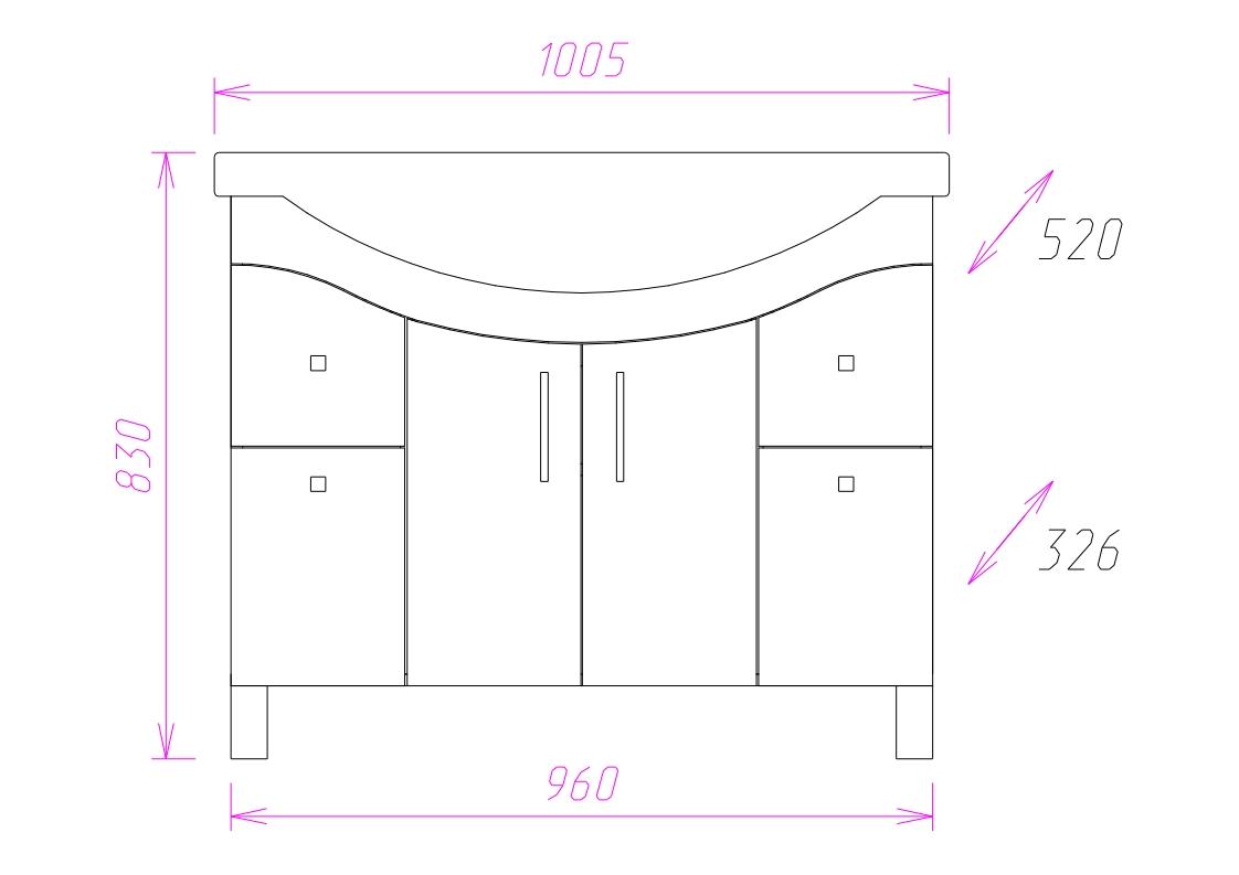 Размеры тумбы без учета раковины и ножек 96x33x68 cм.