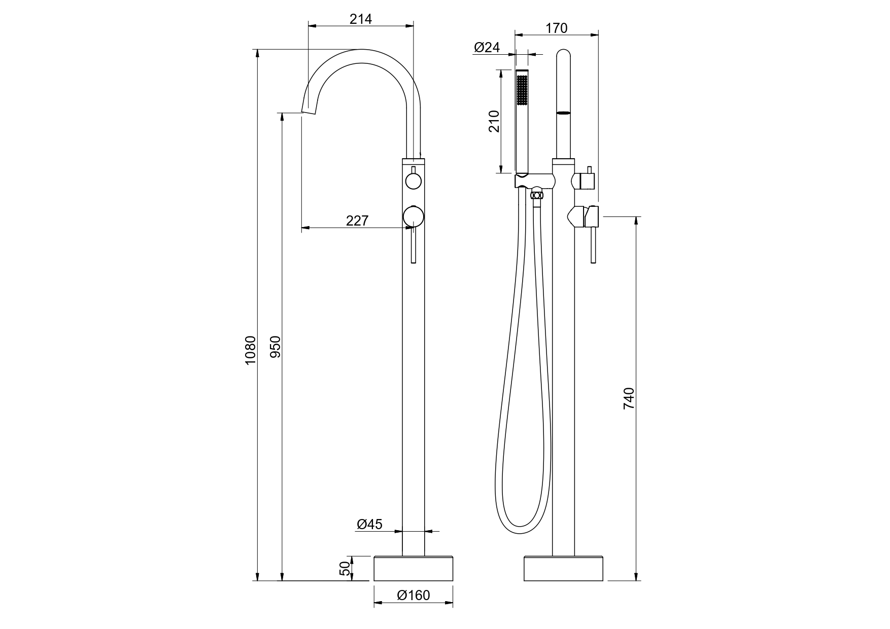 —Смеситель Aquatek Европа AQ1345BG напольный золото без термостата