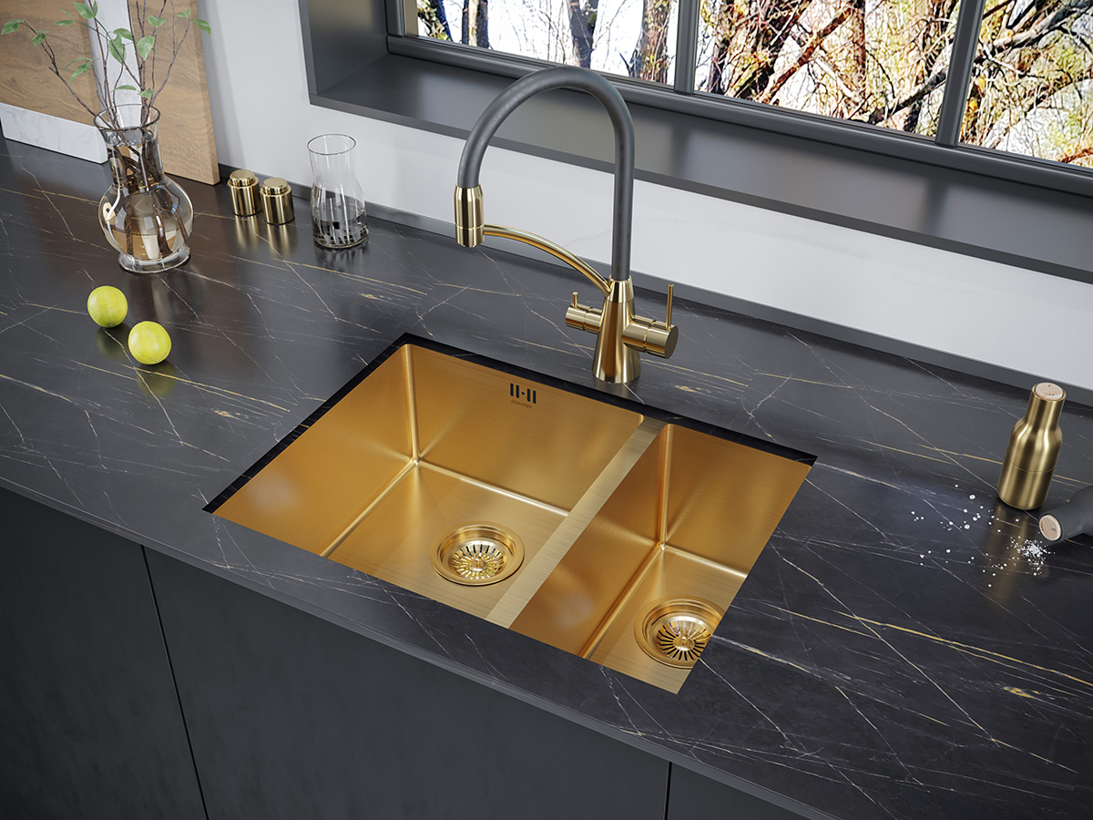 —Кухонная мойка Paulmark GERBERG 59/2S UNI PM225944-BGL 34х39 цвет брашированное золото поверхность матовая