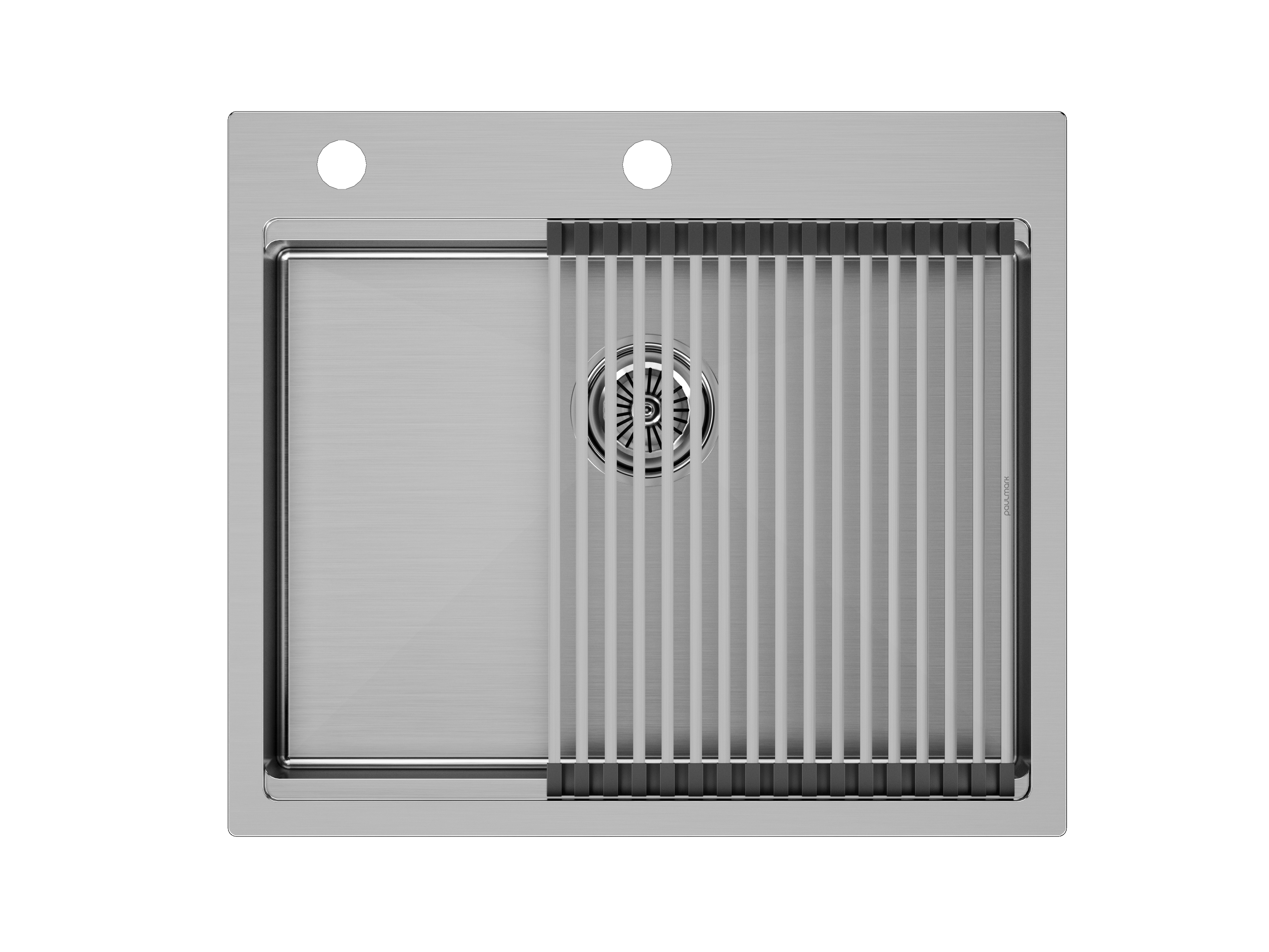 Ролл-мат R405-BS в комплекте с мойкой KRONER-PRO 59 многофункционален и может быть использован в качестве подставки для горячей посуды, сушилки для овощей и фруктов или коврика для разморозки продуктов. Благодаря двусторонним силиконовым наконечникам ролл-мат может быть размещен на столешнице, крыле мойки или в специальных направляющих чаши кухонной мойки. Брашированное покрытие ролл-мата из нержавеющей стали не только делает его дизайн современным и стильным, но и предотвращает возникновение царапин и вмятин.