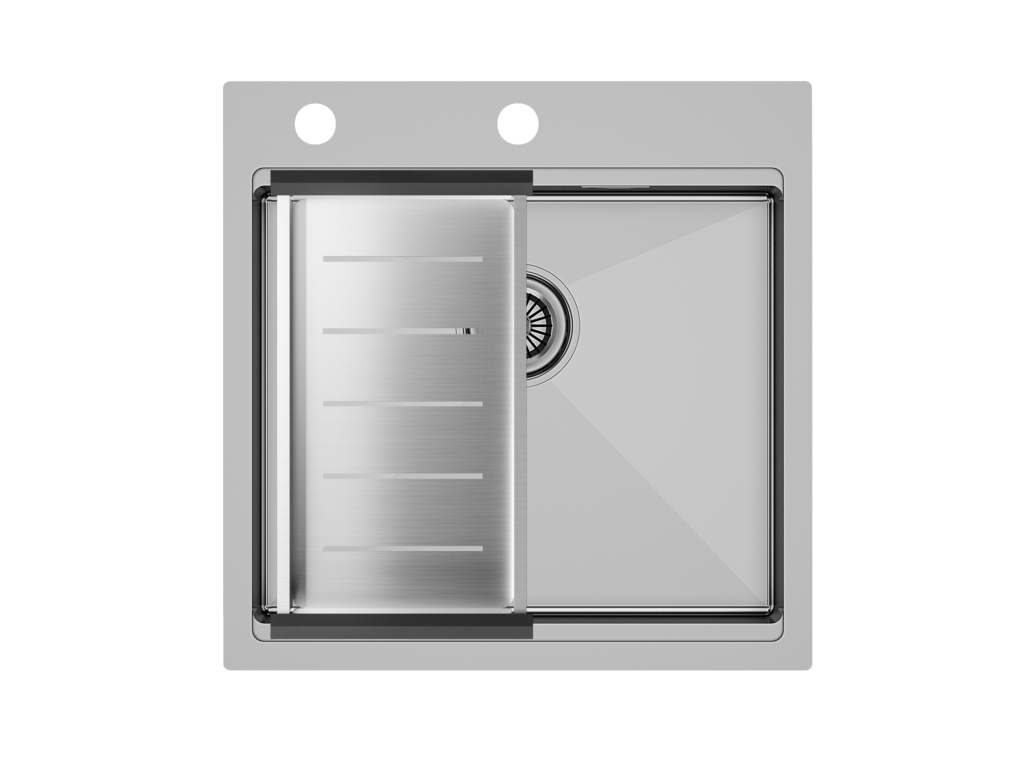 Прочный материал мойки позволяет избежать деформации от большого веса посуды и продуктов и обладает устойчивостью к термическим воздействиям. Мойка легка в уходе и чистке, а также имеет дополнительное отверстие для установки дозатора или кнопки для измельчителя, что помогает оборудовать рабочее пространство так, как вам удобно.