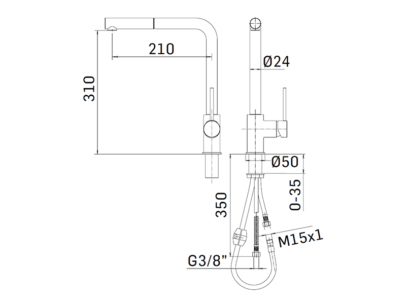 —Смеситель для кухни Mamoli Programma Cucina 72110000000K на столешницу черный матовый