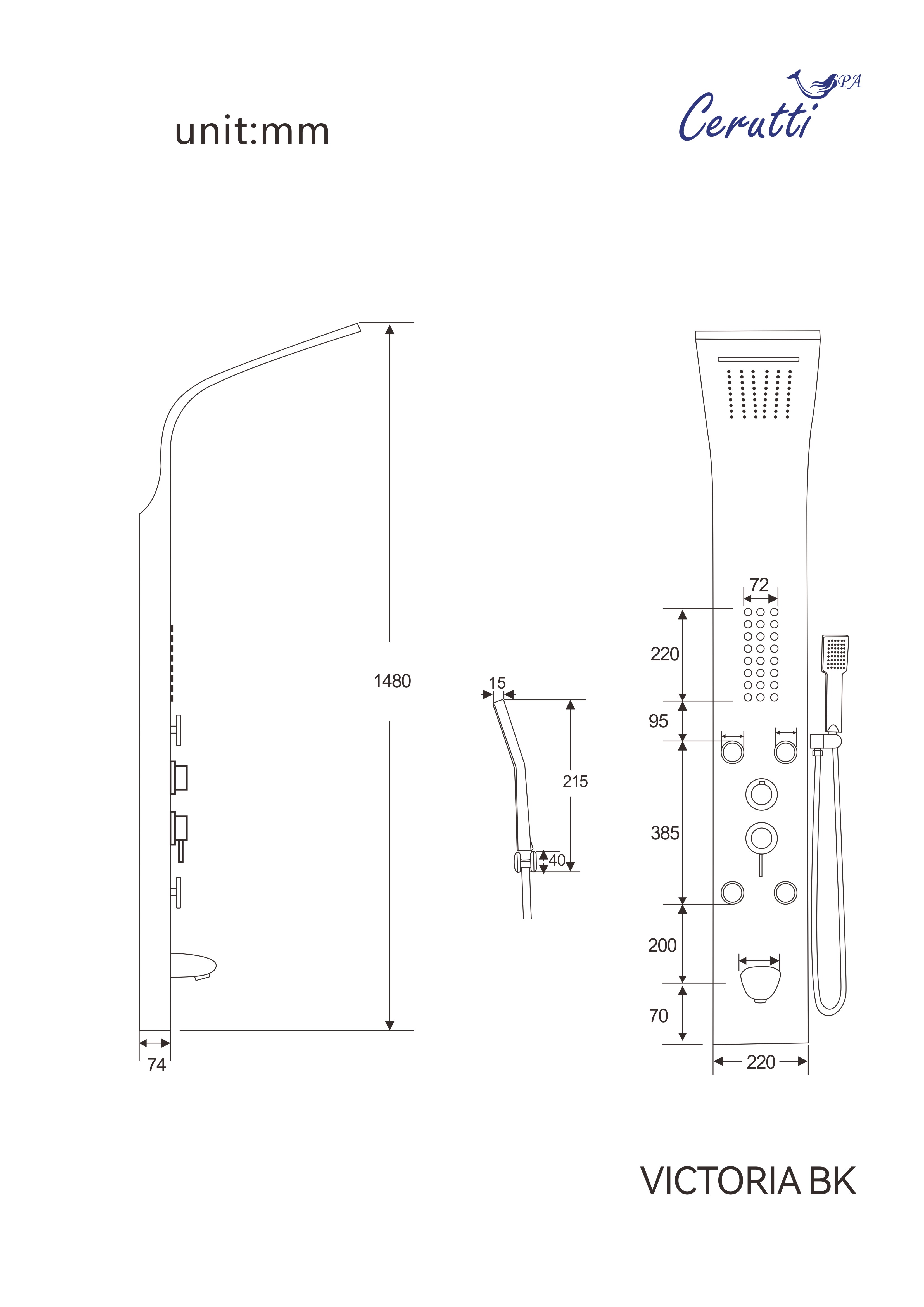 Удобная и многофункциональная душевая панель VICTORIA BK предназначена для установки внутри душевых уголков, ограждений, а также совместно с ванной.