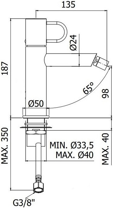 Длина излива, см