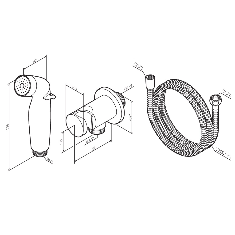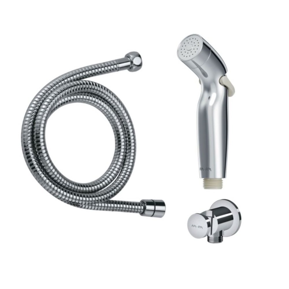 Лейка для гигиенического душа со шлангом и держателем для удобного использования и поддержания гигиены. Минималистичный дизайн и настенная установка прекрасно впишется в небольшие санузлы. Система быстрой и точной установки душевого присоединения позволит установить гигиенический душ самостоятельно. Шарнирное соединение защищает душевой шланг от перекручивания. Длина душевого шланга 1200 мм для комфорта. Диаметр лейки составляет 33мм. Один режим гигиенического душа: Spray.