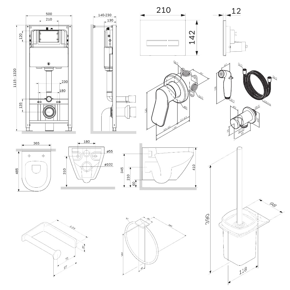 Комплект включает в себя: стильный смеситель для душа монтируемый в стену шланговое присоединение с боковым расположением держателя для гигиенической лейки гигиеническая лейка душевой шланг 1 500 мм. Завершают комплект инновационные аксессуары.