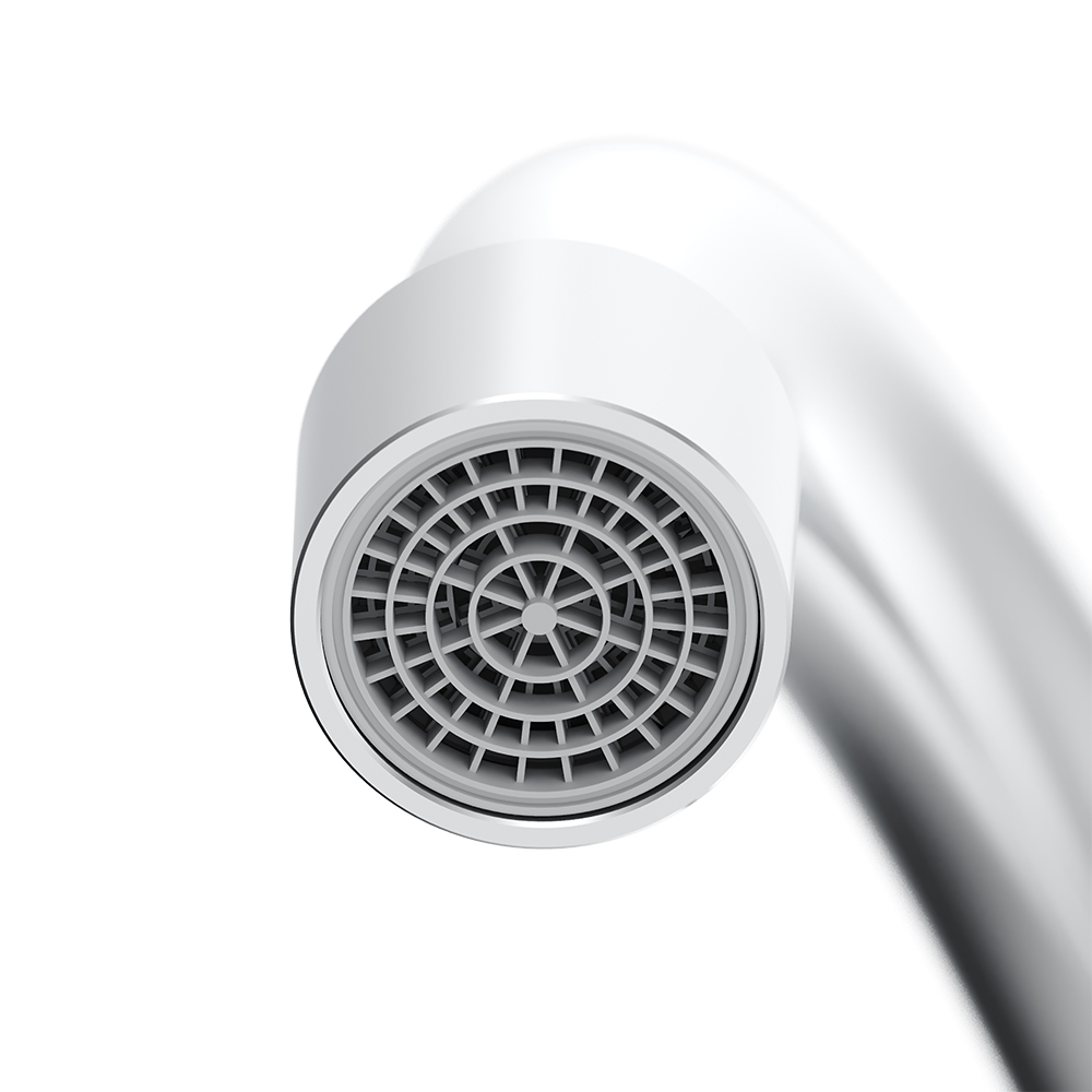 Стильные вентильные ручки станут центром внимания на вашей кухне а керамические кран-буксы с поворотом на 180 градусов приятно удивят плавностью хода и регулировки воды. Поддержание блеска продукта обеспечено с покрытием High Gloss. Для контроля и сокращения расхода воды в смеситель встроен аэратор EcoSave который насыщает струю воды воздухом что позволяет поддерживать постоянный напор воды.