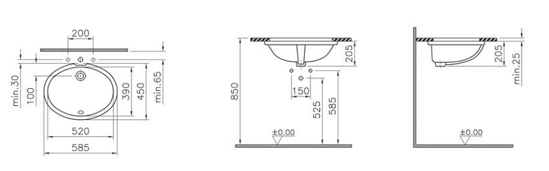 —Раковина из сантехнического фарфора Vitra Arkitekt 6069B003-0012 59х45 встраиваемая цвет белый
