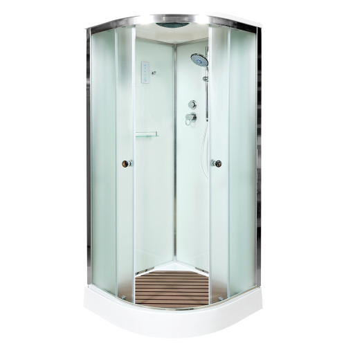Стильная душевая кабина с внутренней сборкой AvaCan D09S с электрикой сочетает в себе высокую функциональность, практичность и надежность. Для изготовления применяют безопасное закаленное стекло толщиной 4 мм, надежно фиксируемое алюминиевым профилем. Цвет профиля хром. В комплекте сифон, полочка, зеркало, сенсорный пульт управления, смеситель, переключатель режимов, душевой гарнитур, деревянная вставка в поддон, тропический (верхний) душ, вентиляция, радио.
