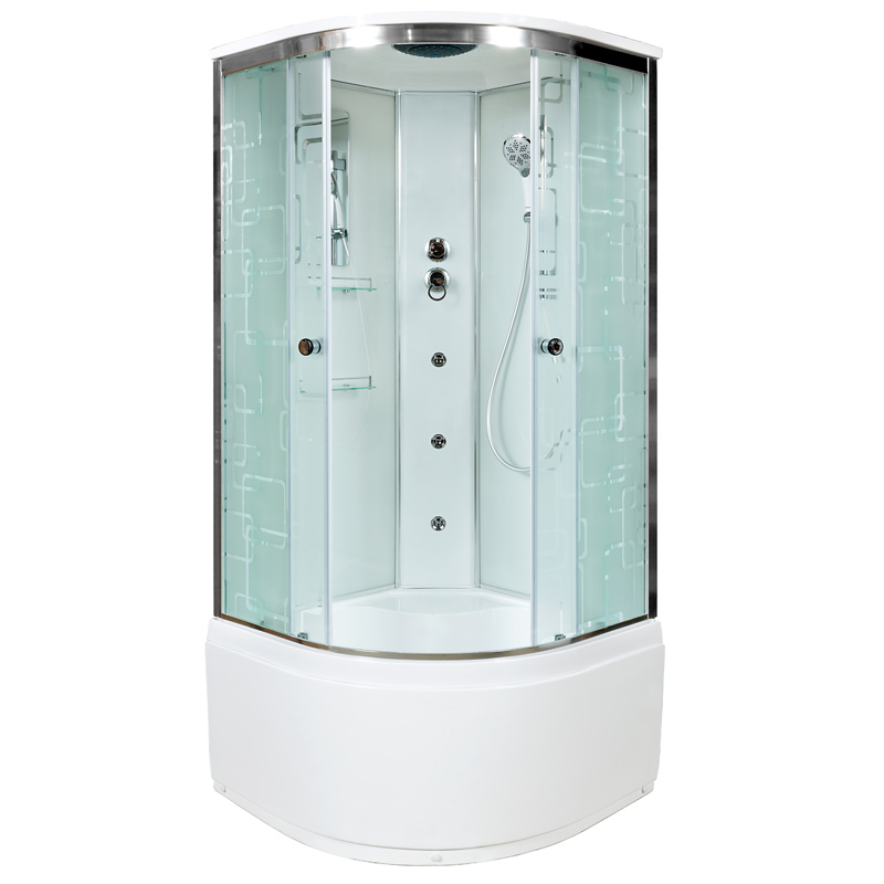 Стильная душевая кабина AvaCan EM 4580 с гидромассажем сочетает в себе высокую функциональность, практичность и надежность. Для изготовления применяют безопасное закаленное стекло толщиной 5 мм, надежно фиксируемое алюминиевым профилем. Цвет профиля хром. В комплекте зеркало, сенсорный пульт управления, донный клапан (клик-клак), смеситель, тропический (верхний) душ, переключатель режимов, вентиляция, полочки, тропический (верхний) душ, радио.