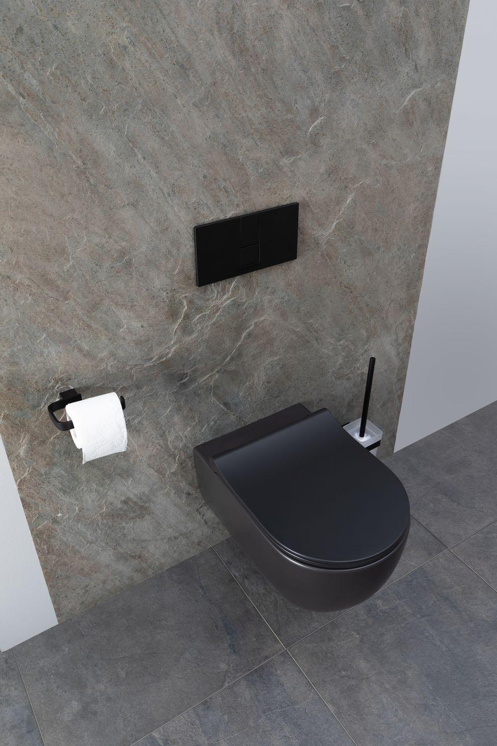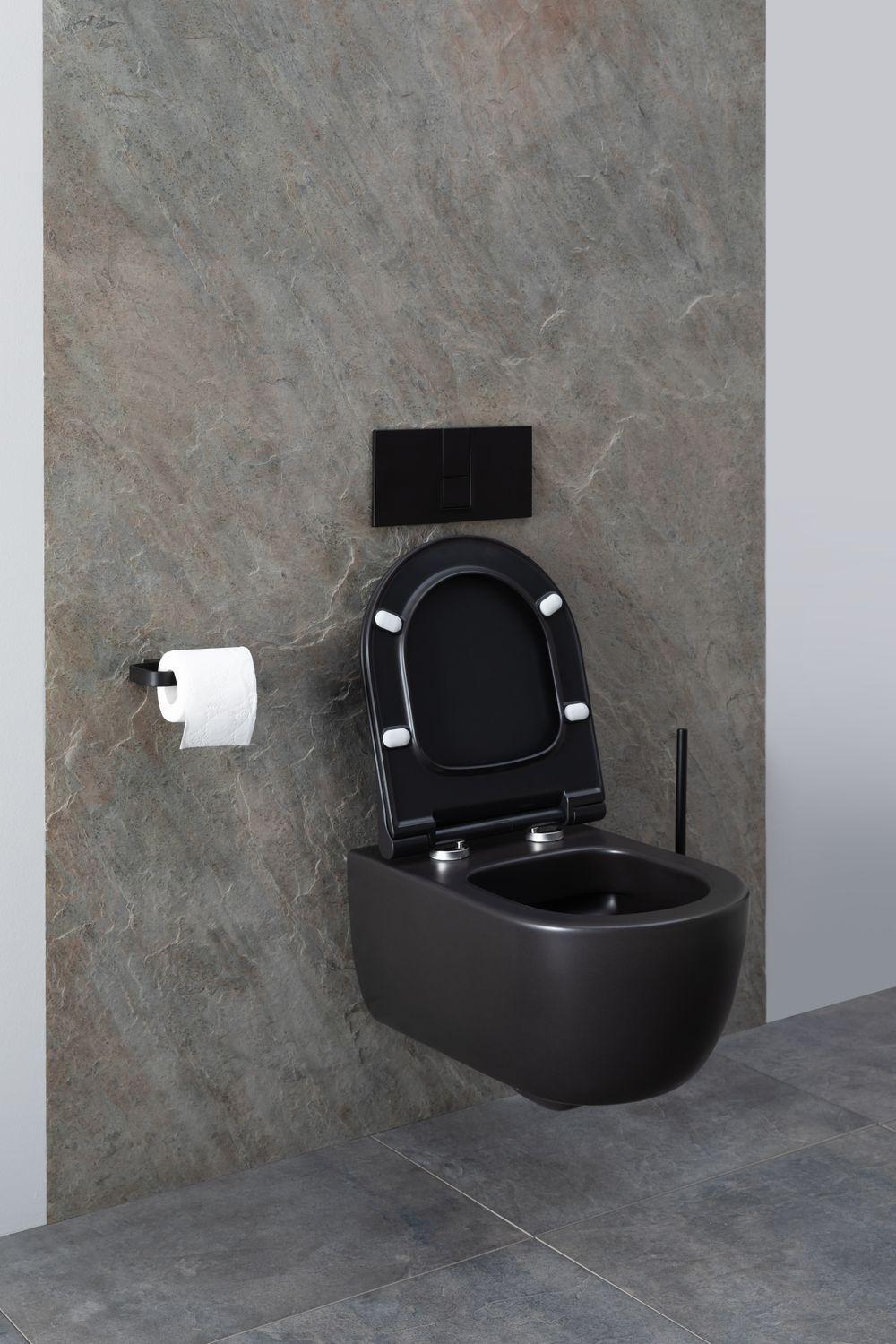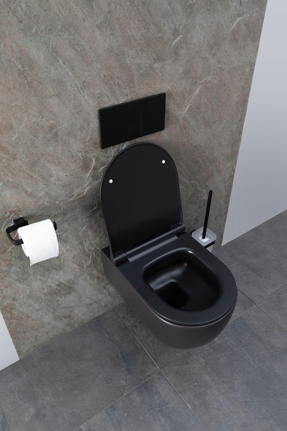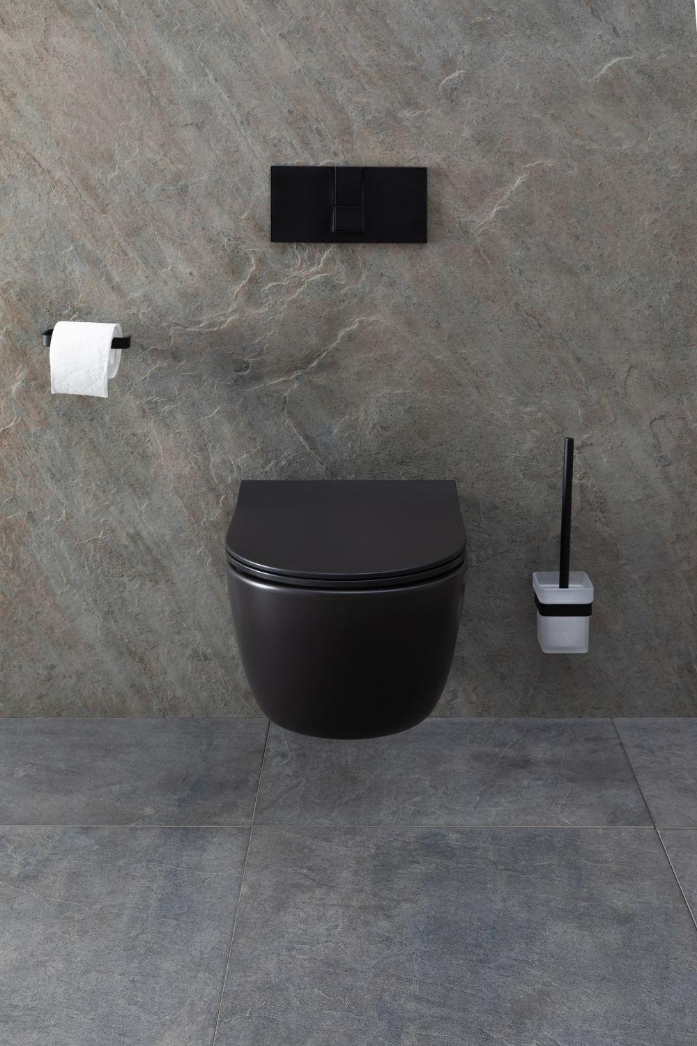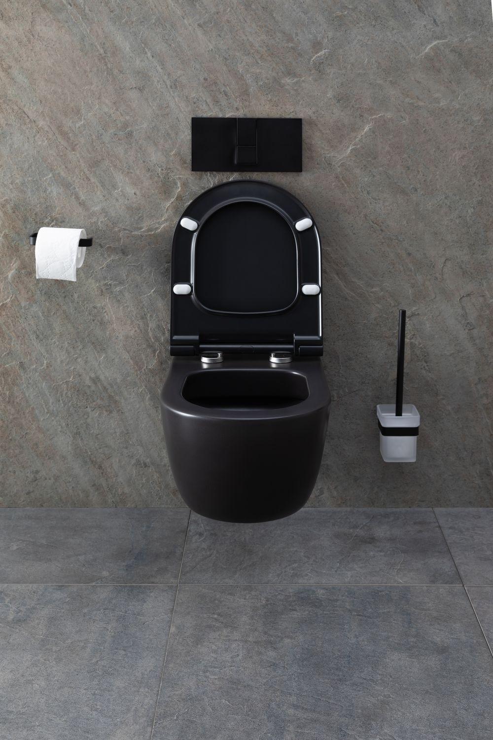 Унитаз подвесной Allen Brau Priority в черном матовом — сдержанное решение для современных санузлов. Округлая форма чаши, безободковая конструкция и немецкое качество — основные характеристики модели. Система подачи воды и выход канализации монтируются с помощью инсталляции в стену, избавляя глаз от визуального мусора. Конструкция не занимает много места, поэтому подходит для малых ванных комнат или туалетов, где каждый квадратный метр на счету. Что касается стиля, то подвесная чаша хорошо впишется в санузел в стиле модерн, лофт, хай-тек, футуризм. В комплект к чаше нужно будет докупить инсталляцию и кнопку смыва на свой вкус. От производителя вместе с чашей идет крышка-сиденье из дюропласта с функцией микролифта — плавного опускания.