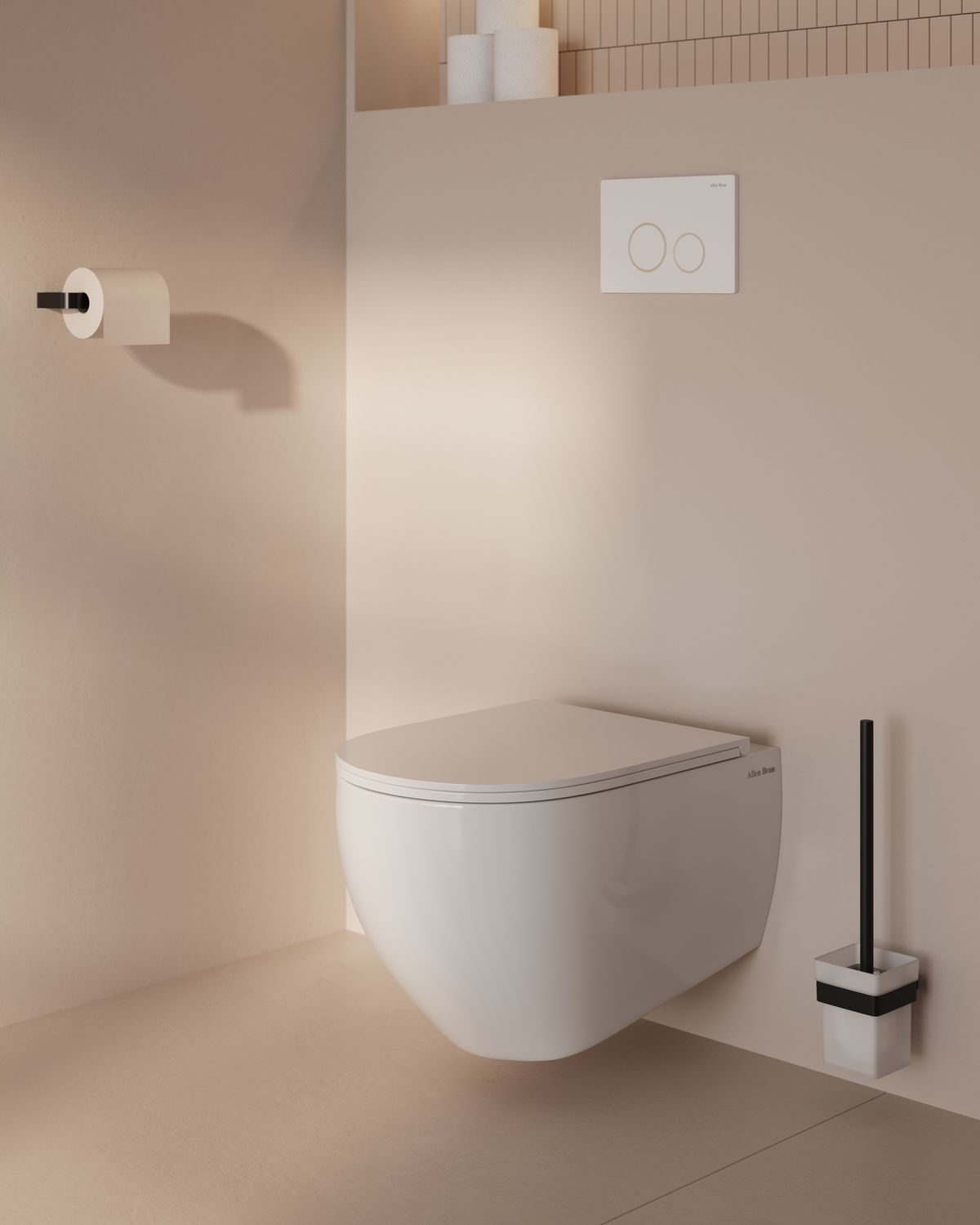 Подвесной безободковый унитаз Allen Brau Reality в белом цвете представляет собой классический вариант в стиле модерн, подходящий практически под любой интерьер санузла. Округлая форма, крышка-сиденье с функцией микролифт и качественная керамика — отличительные особенности модели. Она крепится на стене, что позволяет проводить уборку без перестановки сантехники. В стену монтируется специальная инсталляция, соединяющая чашу с коммуникациями. Инсталляция покупается отдельно, как и настенная кнопка смыва. Что касается сочетаемости с разной отделкой санузла, то белый вариант хорошо смотрится с малой плиткой, кафелем разного цвета, вариантами из дерева и камня и др. При установке лучше обращаться к профессионалам на этапе ремонта.