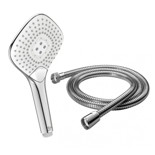 Промо-набор 2 в 1 Ideal Standard  состоящий из IDEALRAIN EVO JET DIAMOND XL3 Душевая лейка Ø125 мм, количество функций: 3, режим струи: Rain (Дождь), Drop Jet (Распыление), Massage (Массаж), легкоочищаемая лейка, ограничение потока 8 л/мин,METALFLEX Металлический шланг для душа 1500 мм, подсоединение G1/2", устойчивость к давлению до 5 атм, прочность до 50 кг