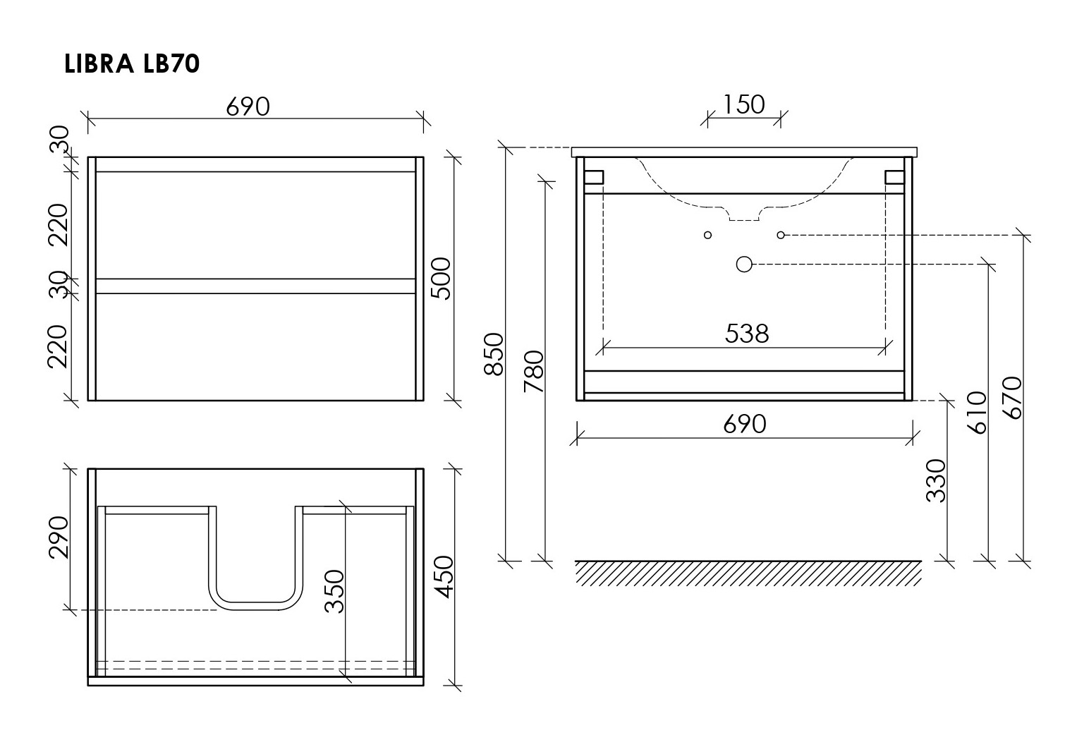 —Тумба под раковину Sancos Libra LB70W 69х45х50 настенная