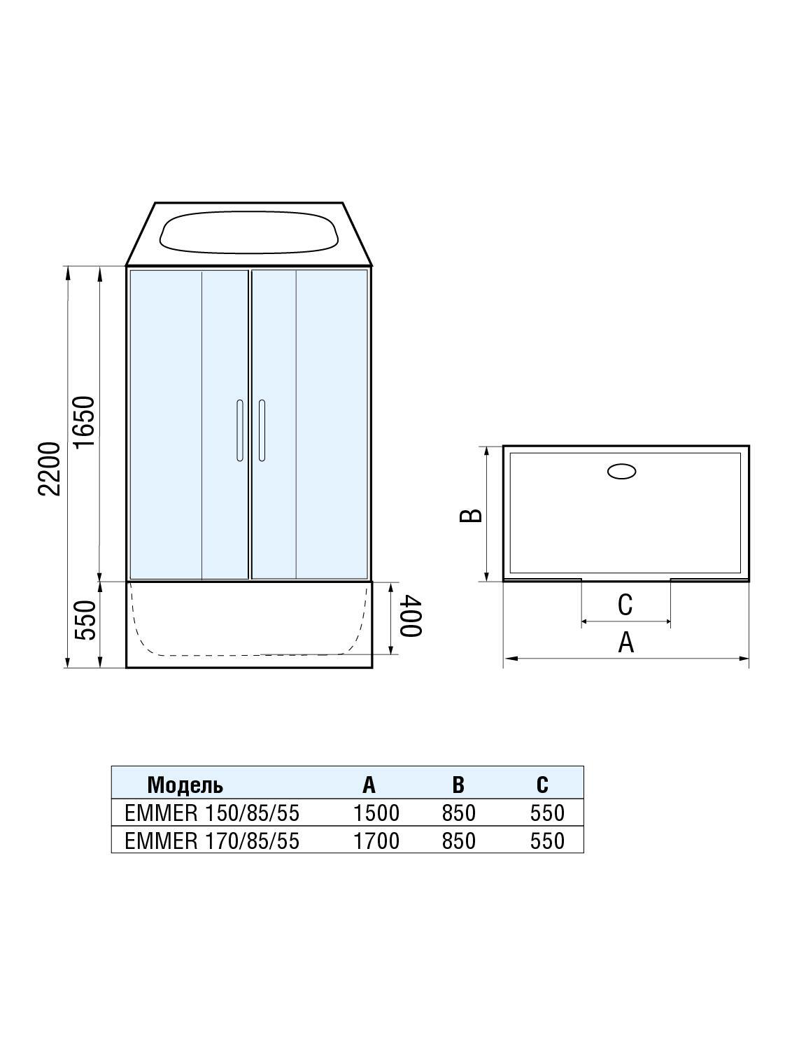 —Душевой бокс WeltWasser WW500 EMMER 150/85/55-2 (10000004659) 150х85