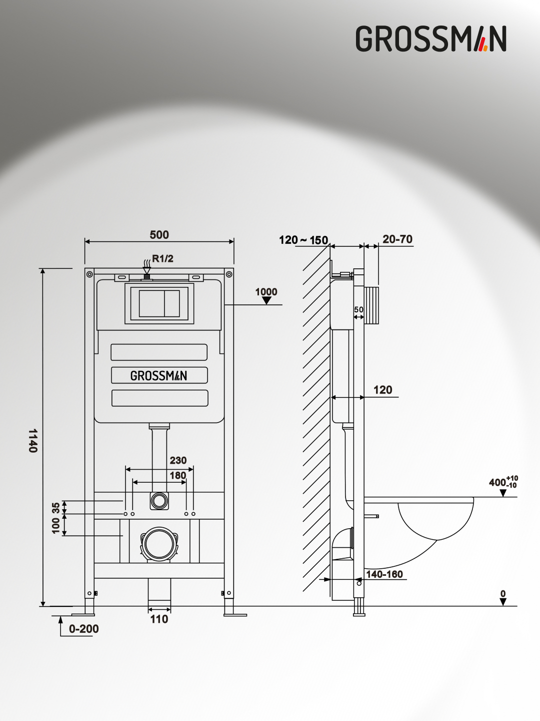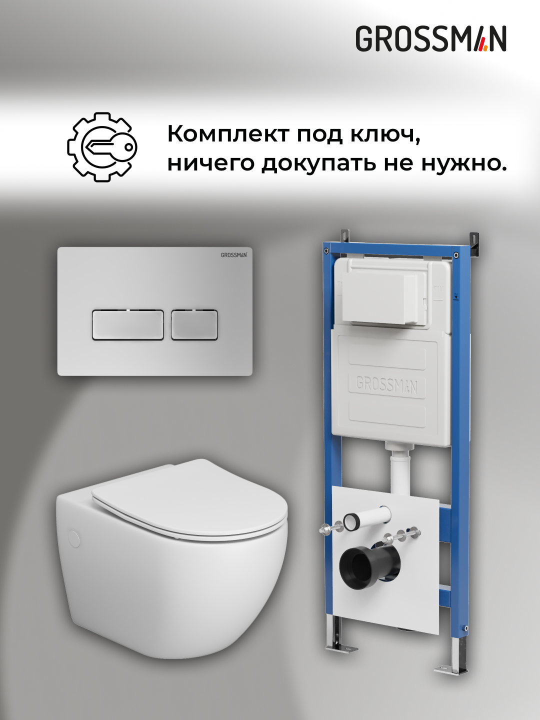 —Инсталляция + кнопка смыва + унитаз Grossman Pragma 97.4411S.03.110