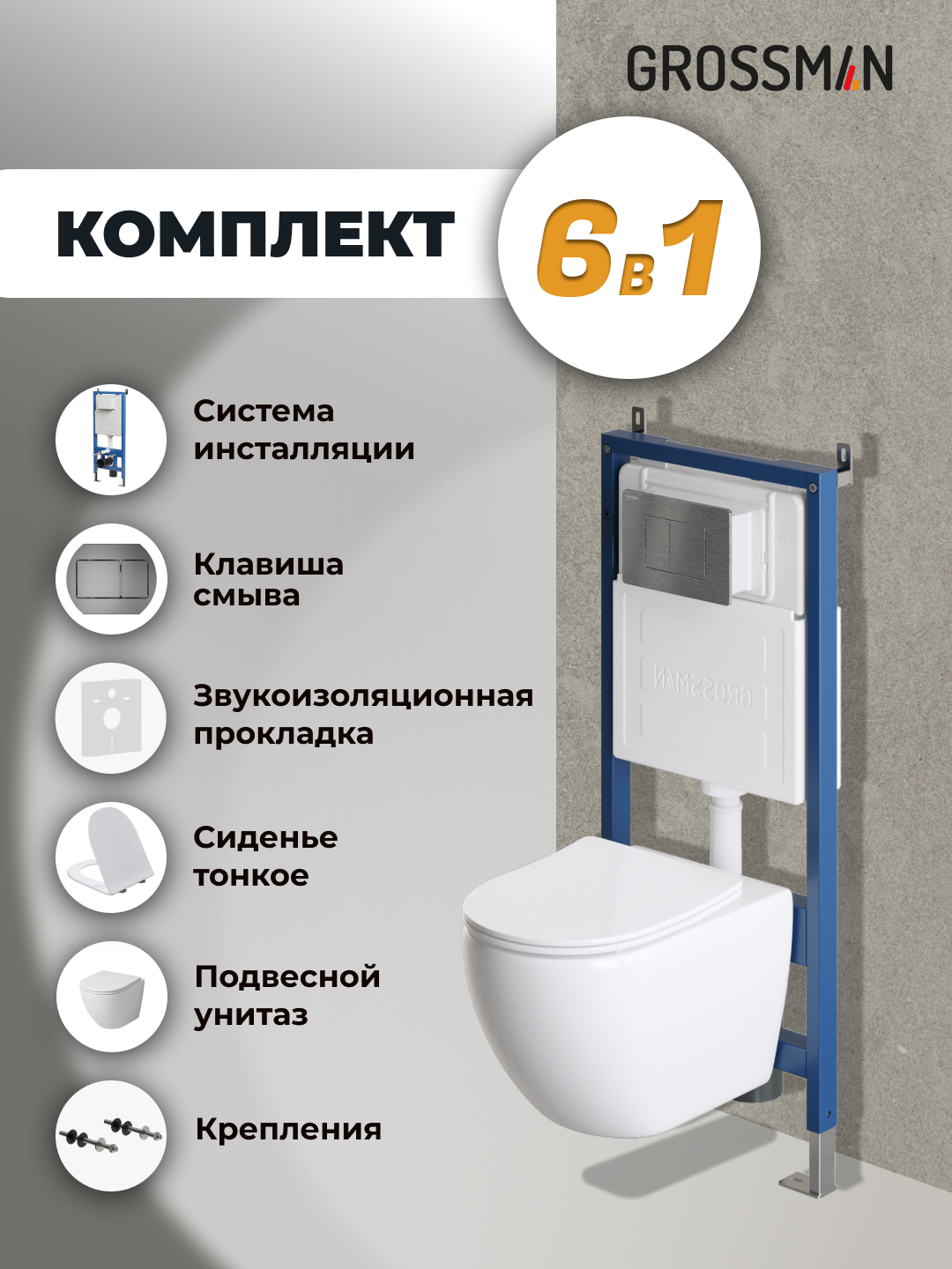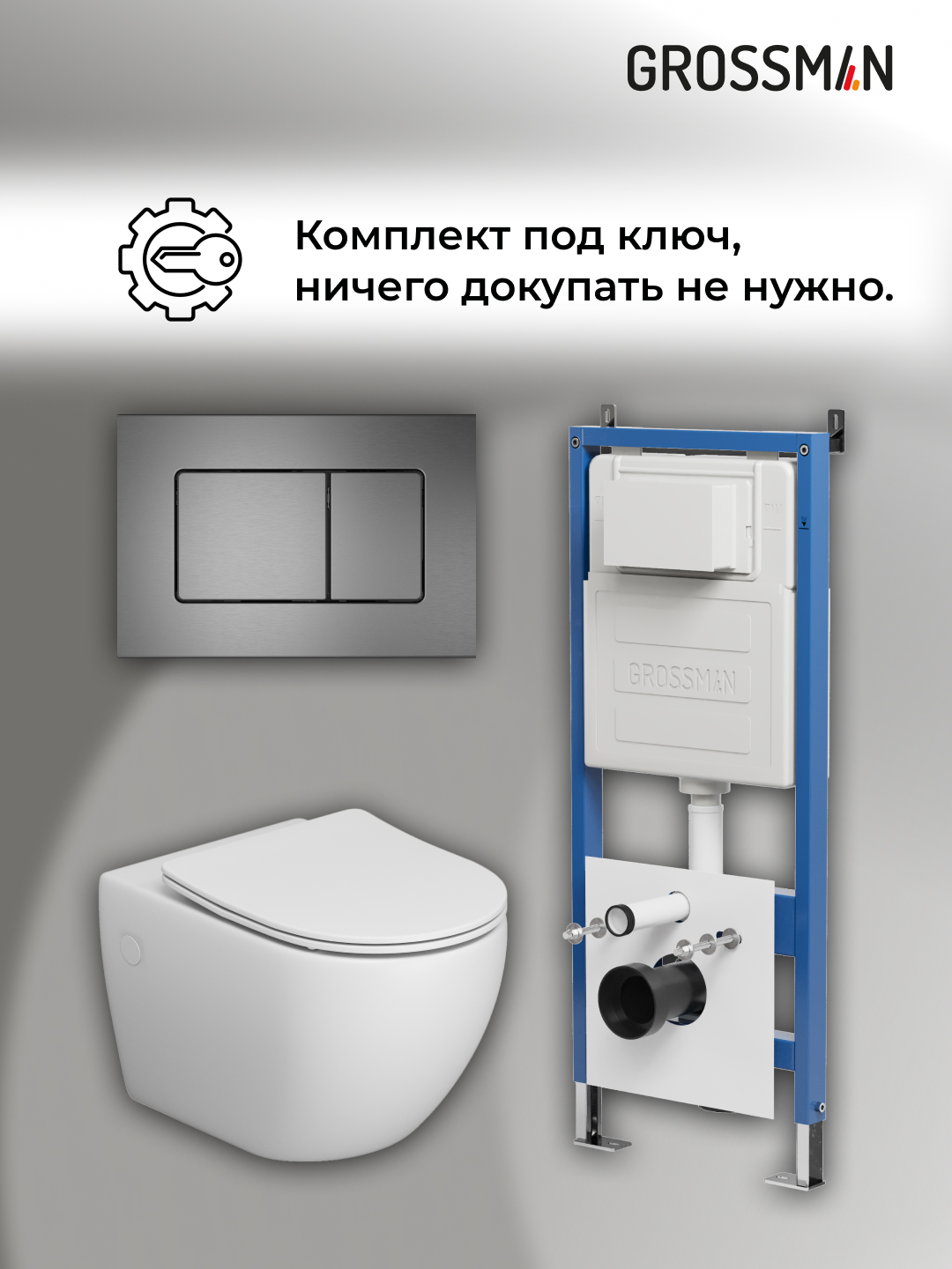 —Инсталляция + кнопка смыва + унитаз Grossman Classic 97.4411S.04.42M