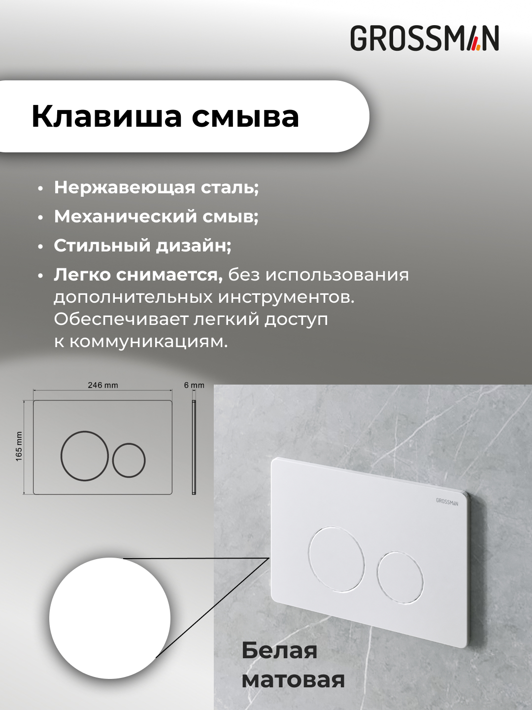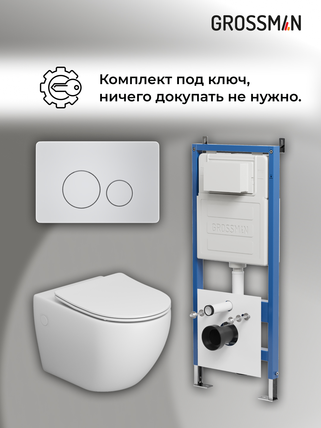 —Инсталляция + кнопка смыва + унитаз Grossman Style 97.4411S.05.01M