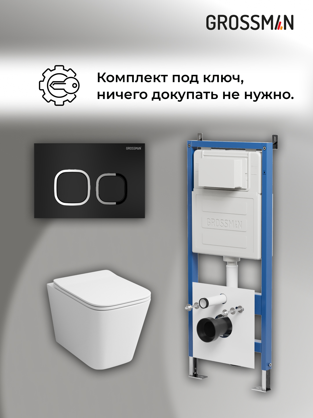 —Инсталляция + кнопка смыва + унитаз Grossman Cosmo 97.4441S.02.210