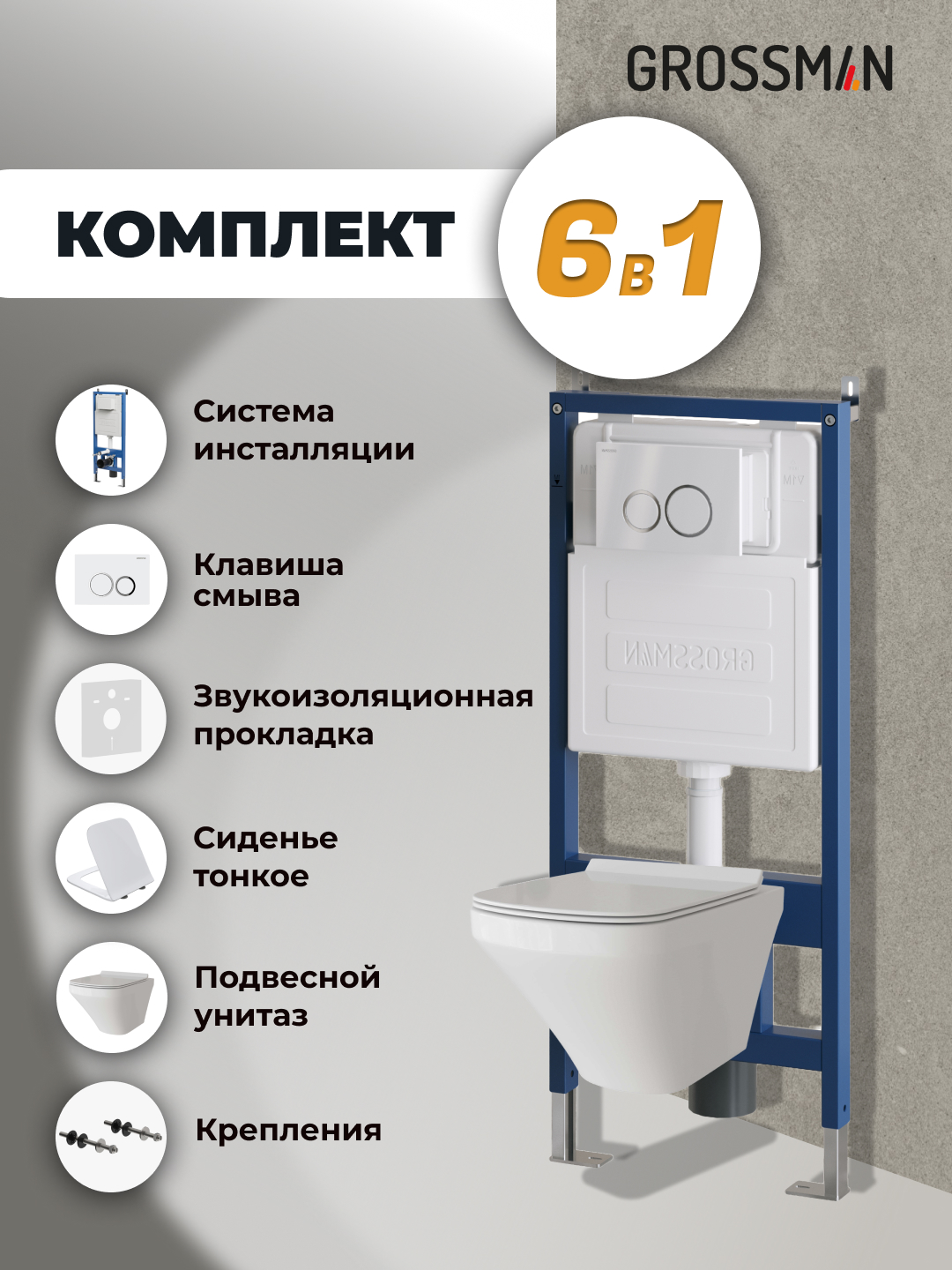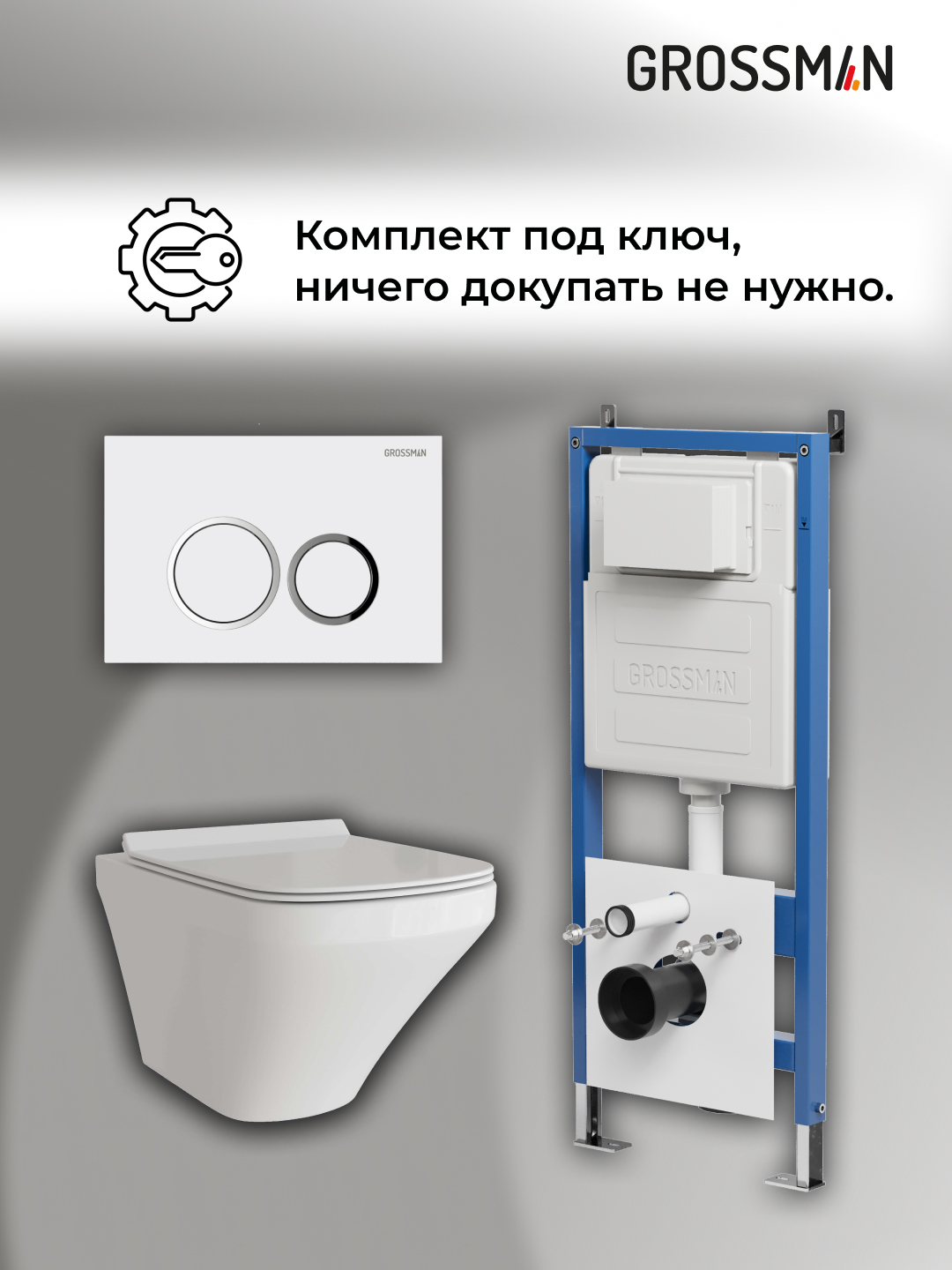 —Инсталляция + кнопка смыва + унитаз Grossman Galaxy 97.4440S.01.000