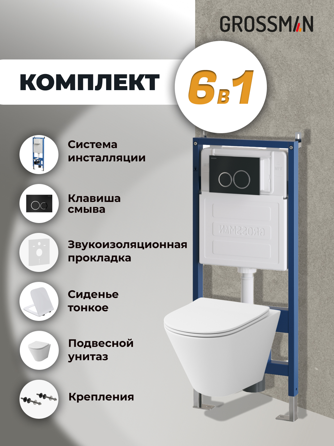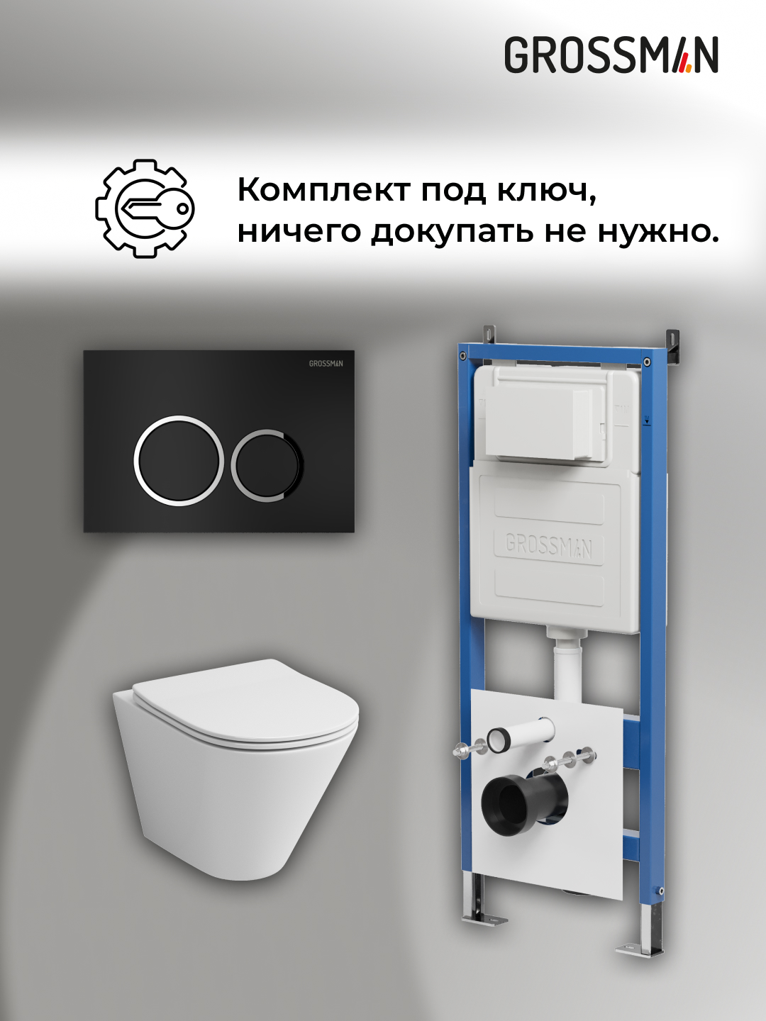 —Инсталляция + кнопка смыва + унитаз Grossman Galaxy 97.4477S.01.210