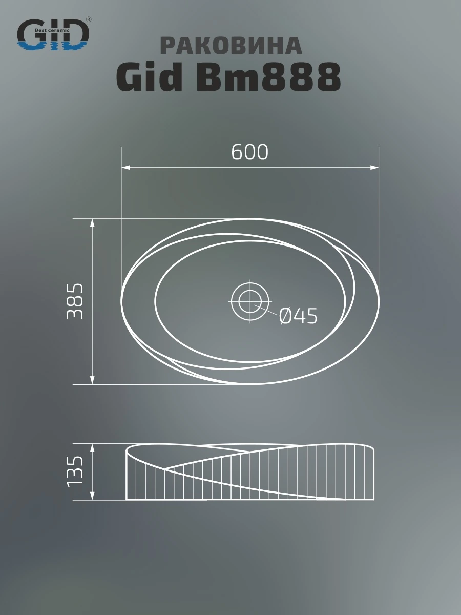 Раковина керамическая Gid Creativo 53358 60х39 накладная цвет черный матовый
