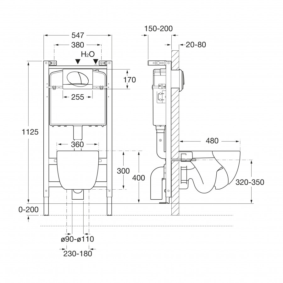 сантехническая инсталляция/кнопка смыва/унитаз