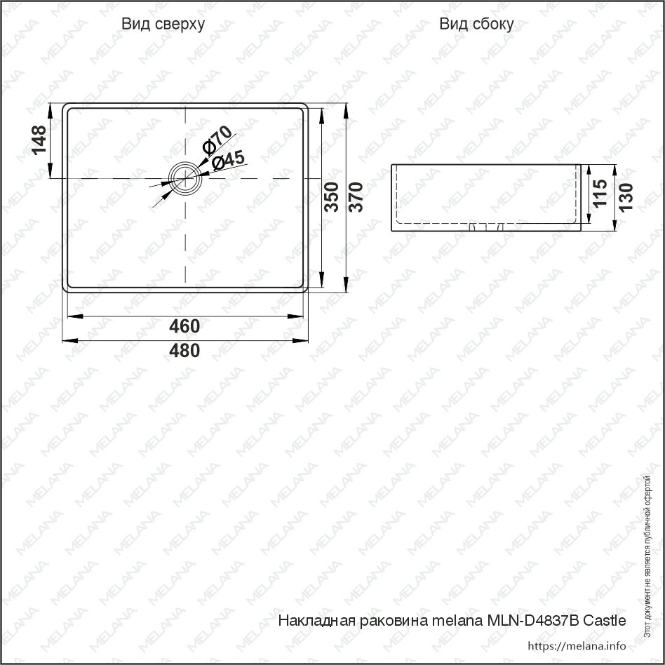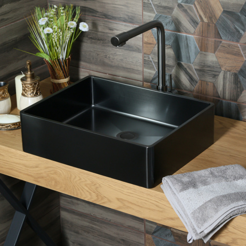 —Раковина из нержавеющей стали Melana MLN-D4837B Castle 48х37 накладная цвет черный