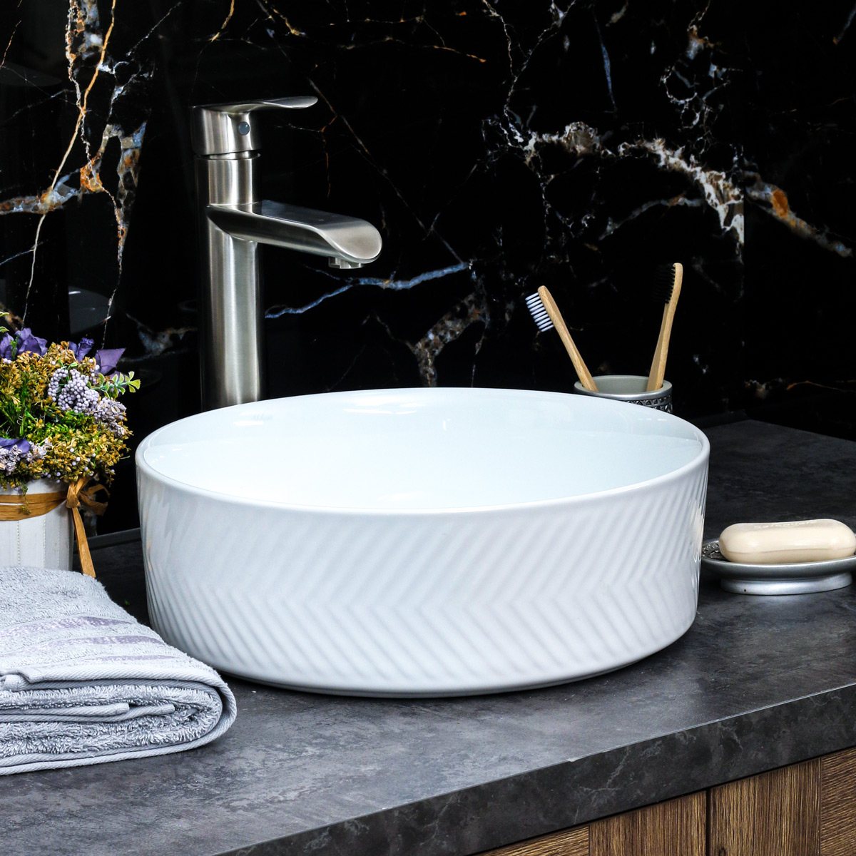 Раковина из сантехнического фарфора Melana 320339-805 36х36 накладная цвет белый