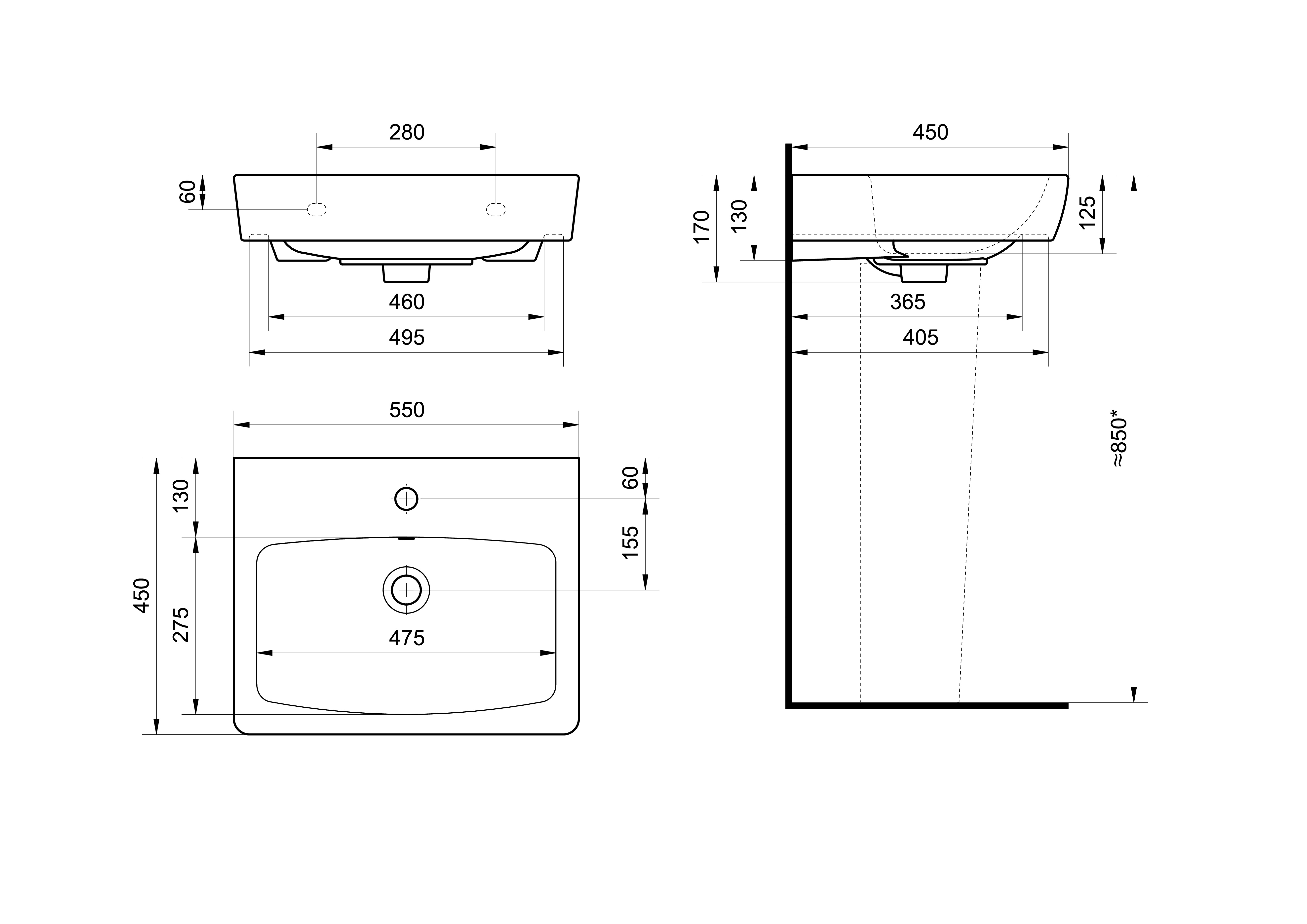 —Раковина из сантехнического фарфора Santek Нео WH302185 55х45 накладная цвет белый
