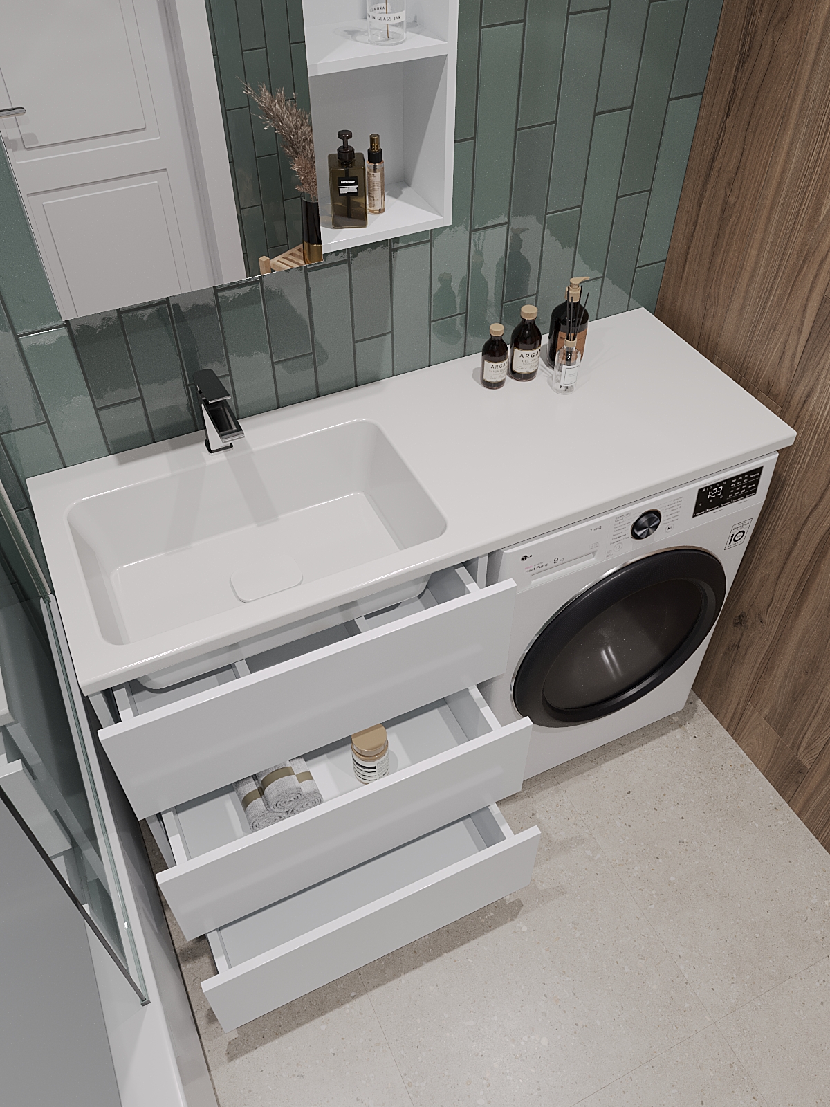 —Раковина из искусственного камня Orange Sistema ST-130RAL 130х48 над стиральной машиной цвет белый