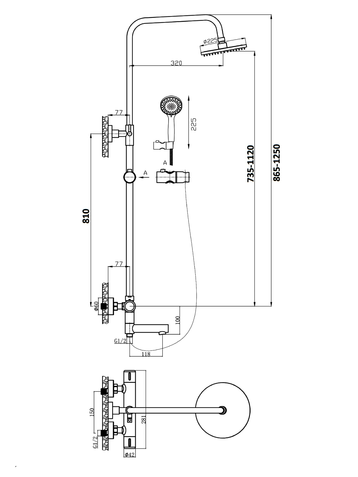 —Душевая стойка Agger Thermo A2461144 настенная цвет черный