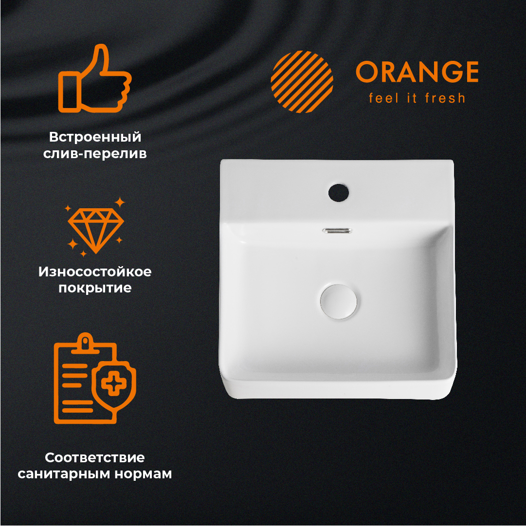 —Раковина из сантехнического фарфора Orange B04-405w 41х42 накладная цвет белый глянцевый