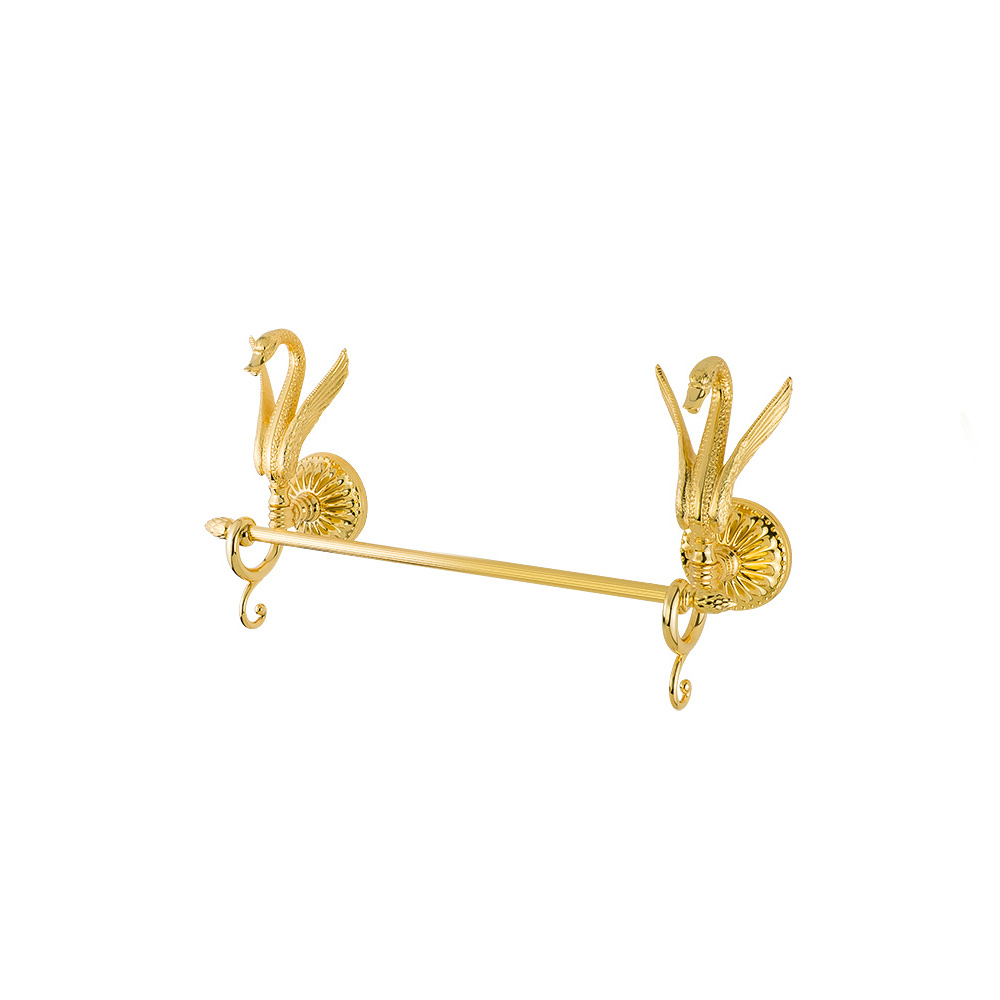 Полотенцедержатель коллекции LUXOR бренда MIGLIORE - один из необходимых аксессуаров для ванной комнаты. Его длина 40 см, что позволит разместить его даже на небольшом пространстве. Используется, как правило, для небольшого полотенца для рук. Также удобно разместить рядом с биде для небольшого полотенца. Изделие выполнено из высококачественной латуни и имеет гальваническое покрытие золотом 24 карата. Внимание: золотое покрытие очень деликатное и для ухода рекомендуется использовать чистящее средство бренда MIGLIORE для смесителей и аксессуаров с деликатными покрытиями бронза, золото, медь и протирать мягкой ветошью.