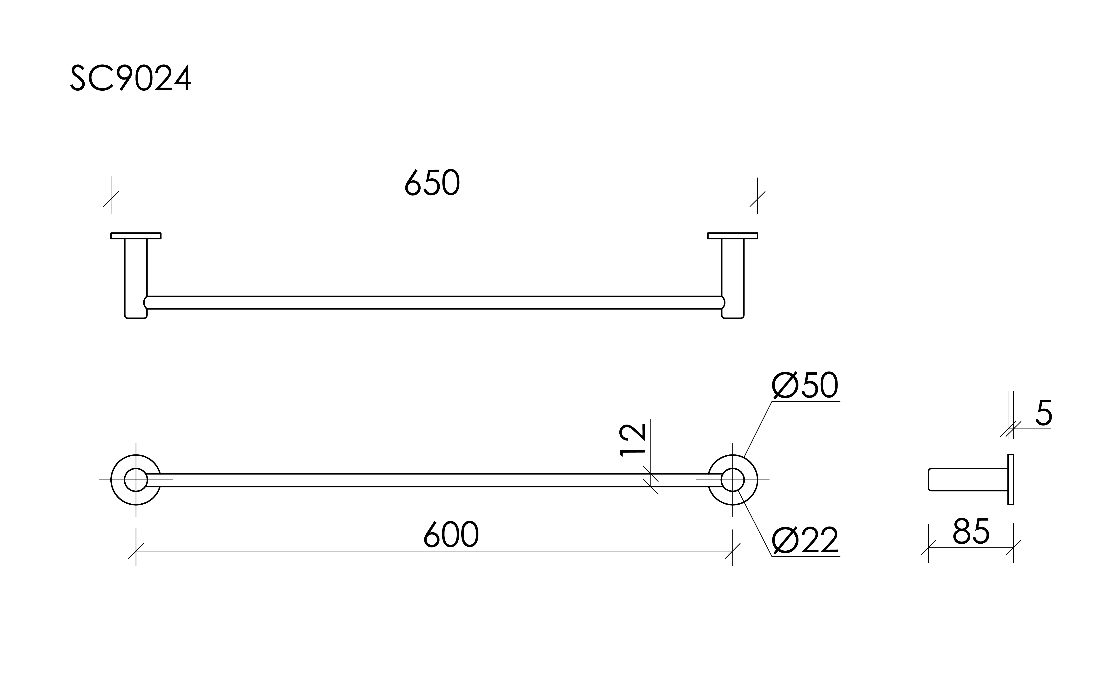 Держатель для полотенец; Материал - латунь; Форма розетки - круглая; Длина 600 мм;  Экстра прочное покрытие PVD; Цвет брашированное золото