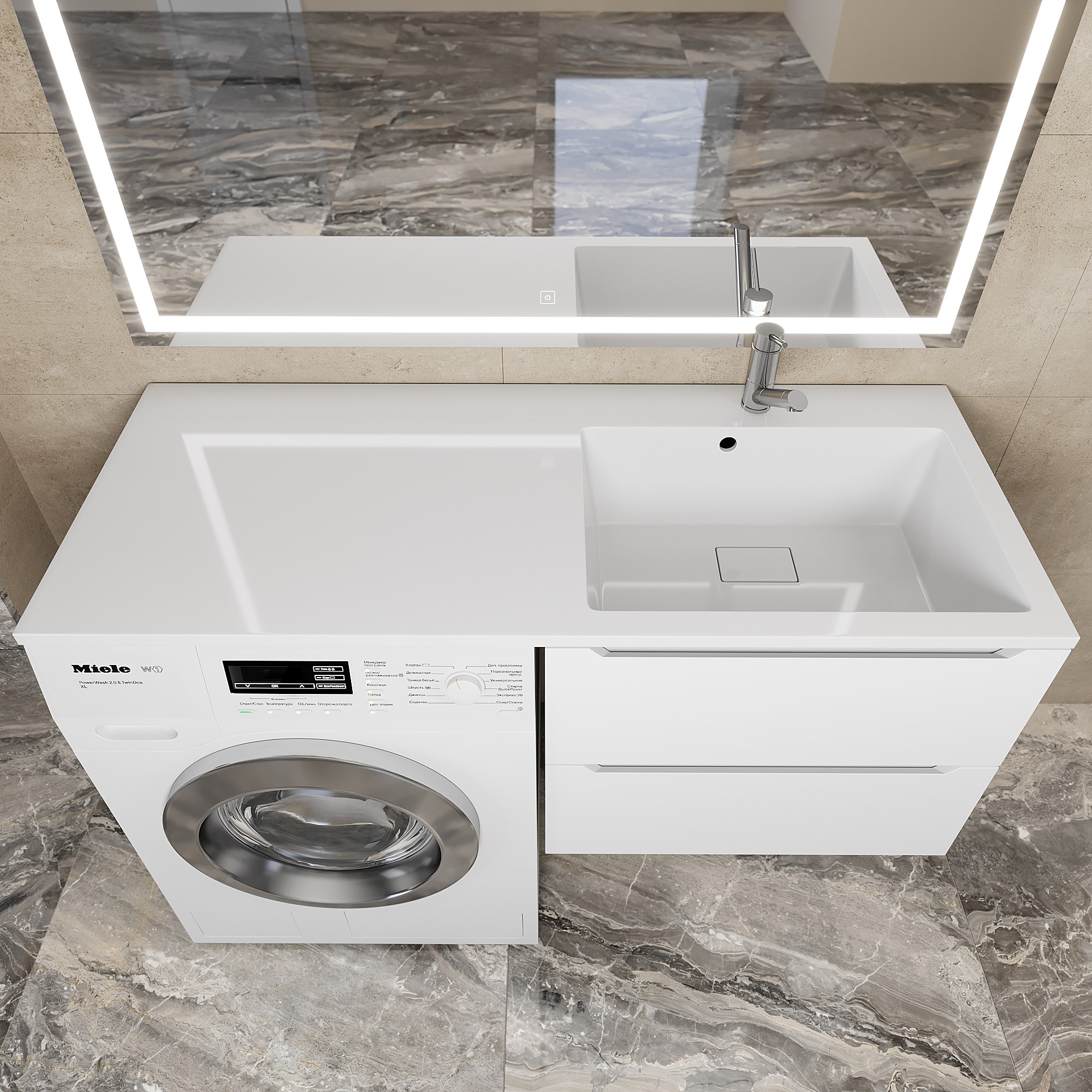 —Раковина из литьевого мрамора Uperwood Cosmos 291020412 120х48 над стиральной машиной цвет белый