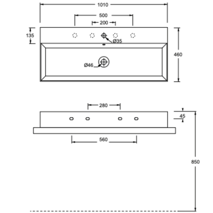 Раковина керамическая Alice Spy 101 см 34350101N подвесная цвет белый