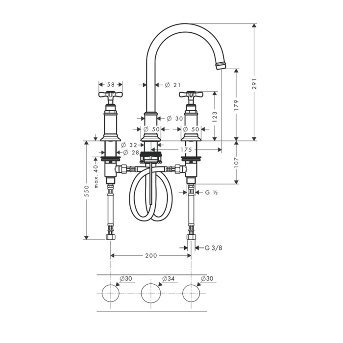 —Смеситель Axor Montreux 16513820 на раковину никель без термостата