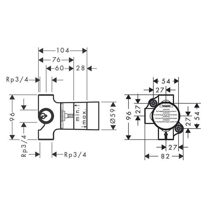 —Cкрытая часть для запорно/переключающего вентиля Axor 15981180