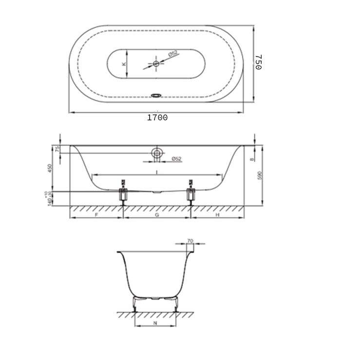 —Ванна стальная Bette Lux Oval 3465-000 PLUS 170х75 отдельностоящая овальная без ножек