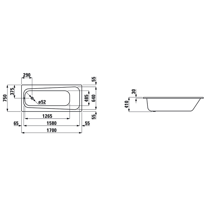 —Ванна стальная Laufen Pro 2.2595.3.600.040.1 170х75 встраиваемая прямоугольная без ножек