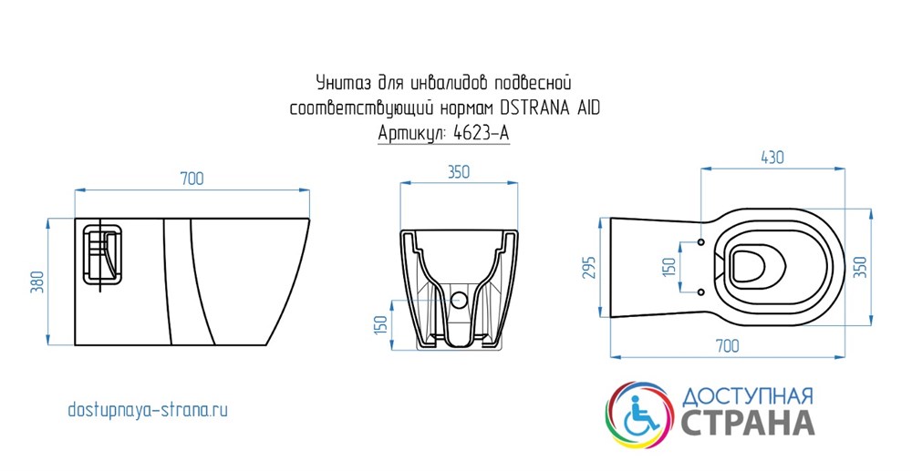 —Унитаз для инвалидов подвесной с инсталляцией для инвалидов соответствующий нормам Dstrana 4622