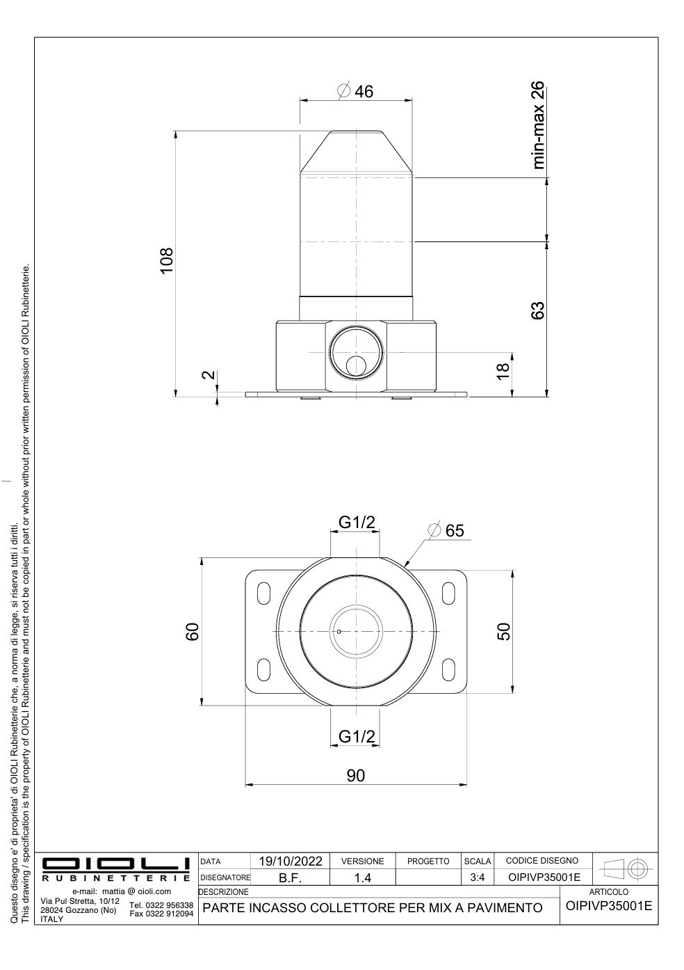 —Внутренняя часть встраиваемого в пол смесителя Oioli Universal OIPIVP35001E