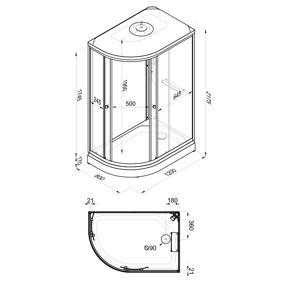 Душевая кабина Тритон Коралл Щ0000061818 120х80 четверть круга с крышей ориентация правая