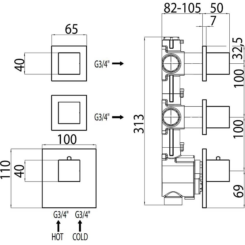 Смеситель для душа Bossini Outlets Z032203.030_УЦ встраиваемый в стену хром (мелкие царапины)