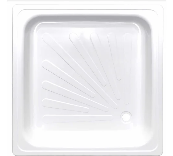 Поддон душевой из стального листа глубокой вытяжки, покрытый стекловидной эмалью, квадратной формы, способ монтажа угловой, универсальная ориентация.