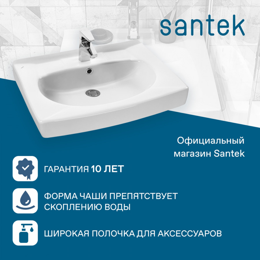 —Раковина из сантехнического фарфора Santek Пилот 1WH110569 50х60 над стиральной машиной цвет белый