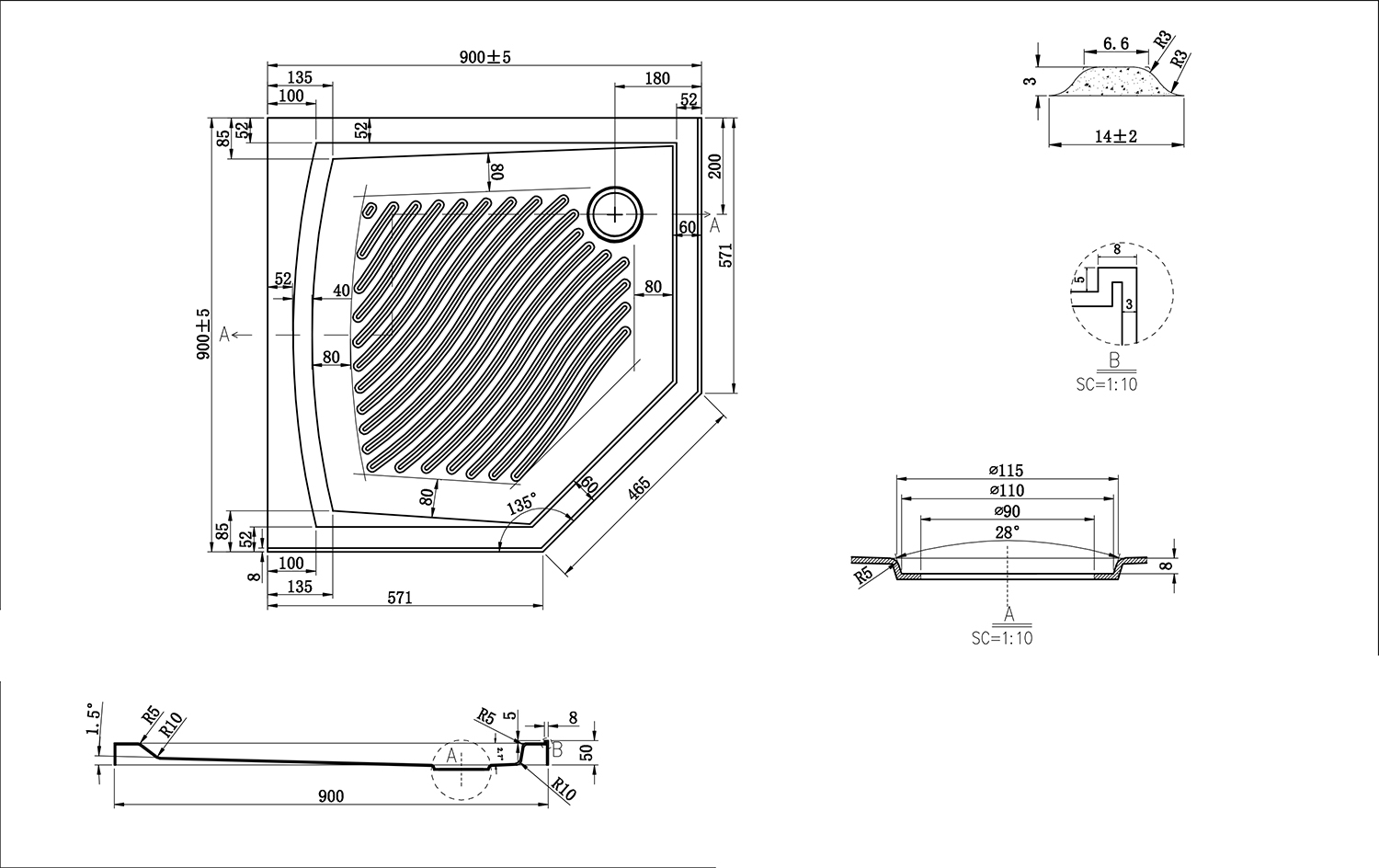 Душевые поддоны пятиугольные